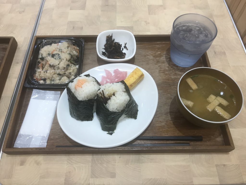 昼はおむすびカフェにて人気セットと一品。