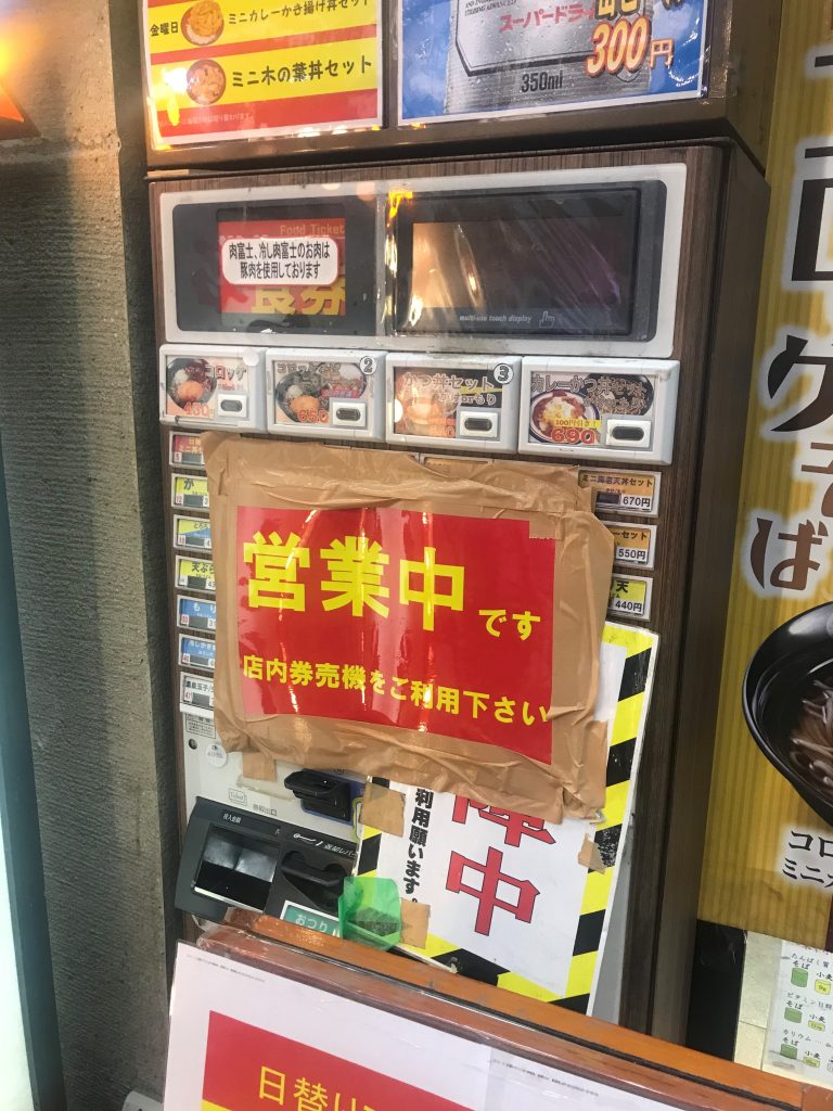 台風一過の日曜日、街には結構な人出がある。どこも混んでそうだったが、夕食は富士蕎麦へ。店の外と内側の2台、券売機が設置されているのだが、外の物は台風の影響か故障中だった。