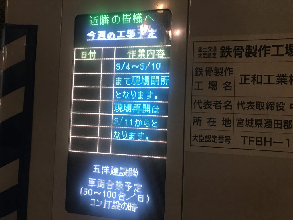 武蔵小山再開発ウォッチ 再開発#20504 投稿日:5月 4, 2020 更新日:5月 5, 2020 令和2年5月4日(月)みどりの日5/4~5/10現場閉所との事です。 北西から 北西から 北西から 北側外柵の電光掲示板 Twitter Facebook Google+ Pocket B!はてブ LINE -武蔵小山再開発ウォッチ -工事予定 執筆者:のと