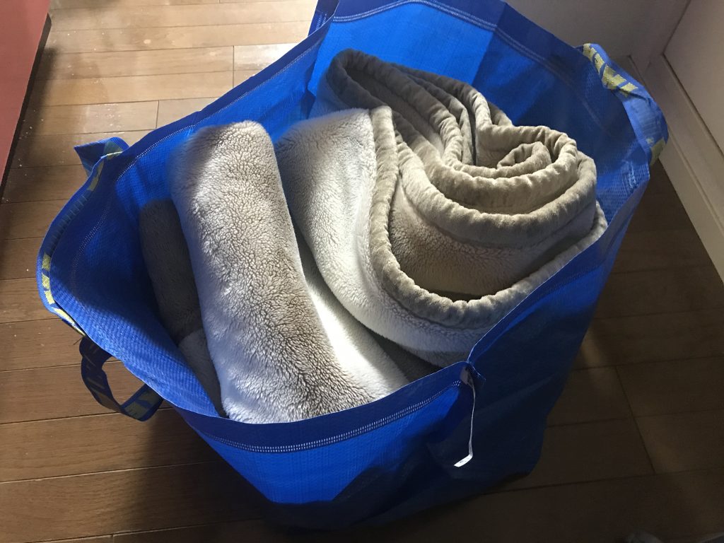 キャンペーンで配布中とされていた「イケアバッグ」、机の上に重ねられていたので、一つ頂く。そして、折角キャンペーン料金なので、毛布を洗ってみることにした。