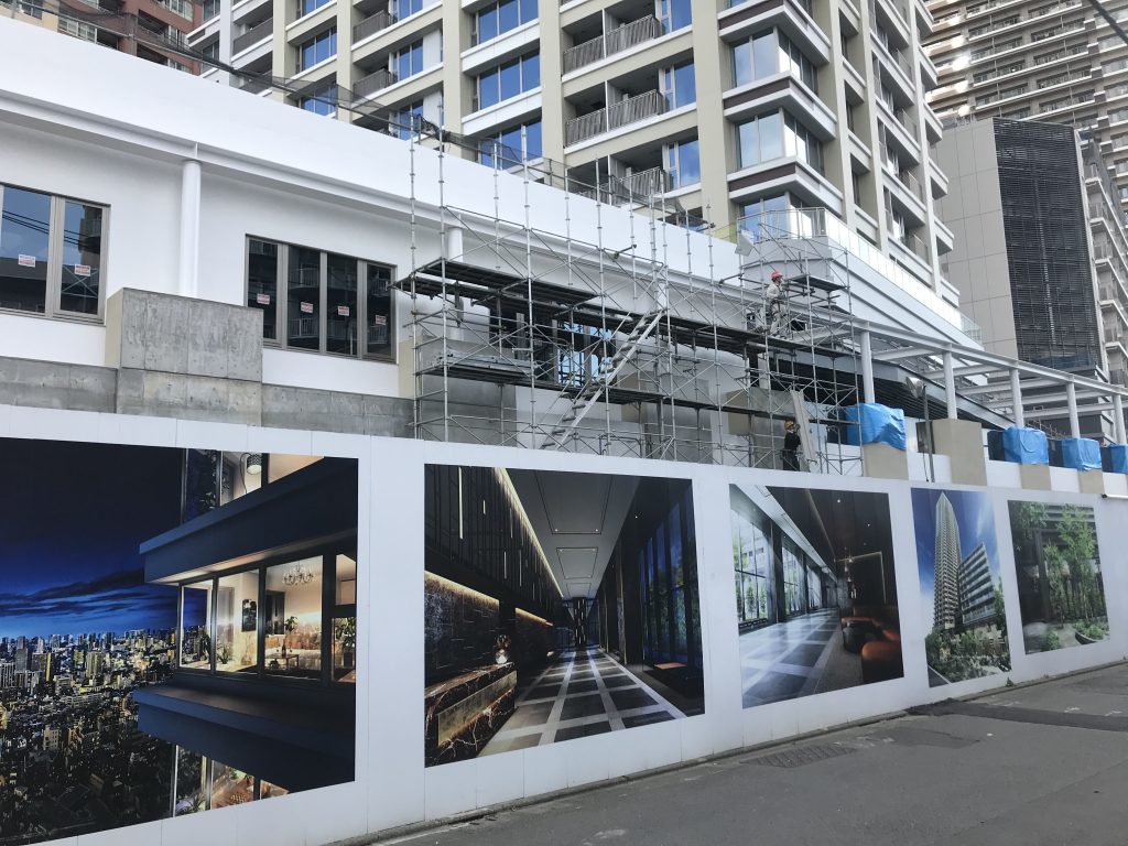 令和元年7月15日(月)海の日 この日は全休とのこと。(ちなみに南隣「パークシティ」の再開発現場は作業してました。)でも金・土、と撮影できなかったので、一応パシャっと。作業予定の曜日の欄に誤表記を発見 …