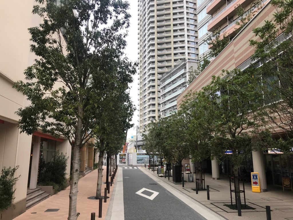 西側道路の植樹帯