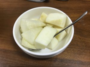 その後、帰ってデザートに冷やしておいた洋梨を剥いた。