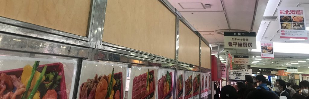 目的の売り場の前の行列も、一応それなりの時間を要したが、過去に並んだ時に比べれば大したことはなかった。リピーター割引の葉書を提示して弁当を2個購入。その後、ホリの売り場に寄って御土産用のおかきも買って離脱。