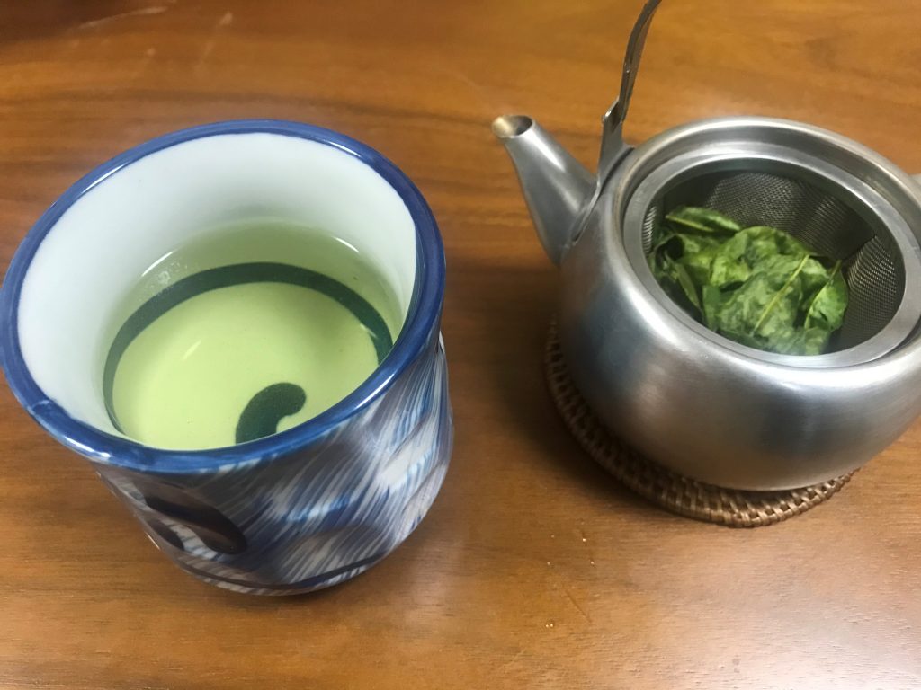 実家で育てている茶の木。せっかくなので飲用してみようと思い、 動画を参考に 持ってきた葉を処理して抽出してみた。