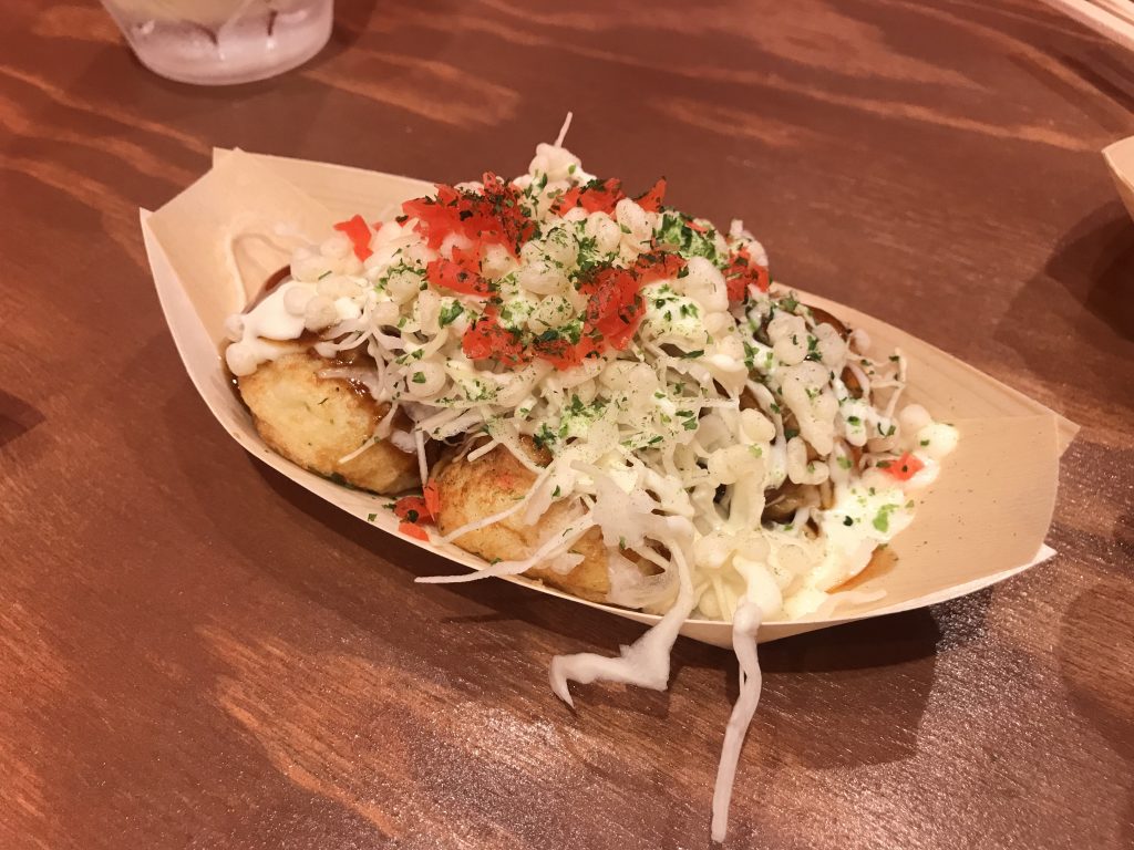 タコ焼きもいろいろあって今回は3種類を4個ずつ頼んでみた。その中で一番評価の高かったのは、キャベ太郎というもの。別の機会にも、これは食べることになりそうだ。