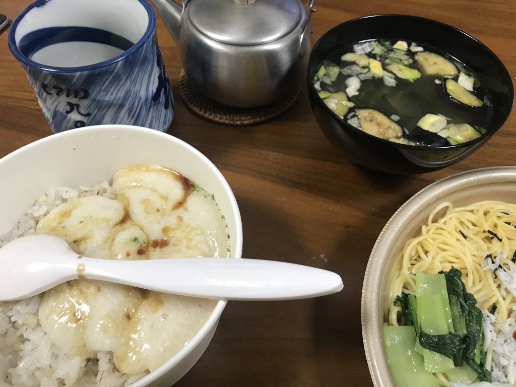雨が続いているので、昼も夜も外出せずにコンビニ系の食事の日となった。