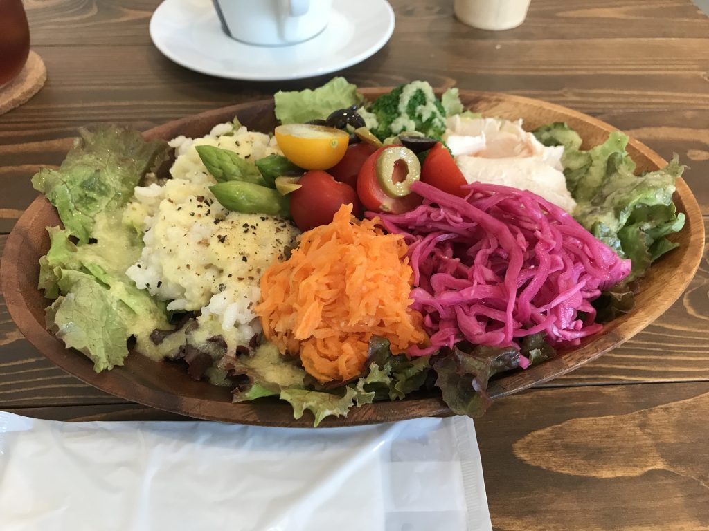 注文したのはサンドイッチではなく、もち麦サラダセットとフレンチトースト。