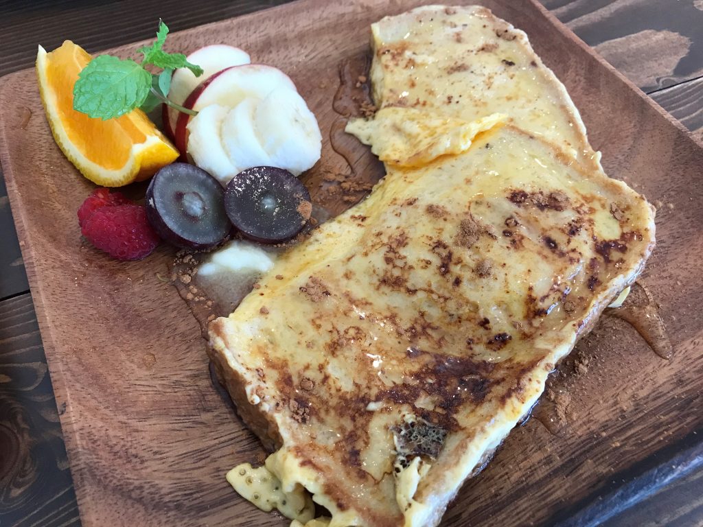 値段相応とは言え、結構なボリューム感。フレンチトーストのみだったとしても、果物が色々と添えられていて好印象だ。同行者と相互シェアして、のんびり美味しく頂いた。
