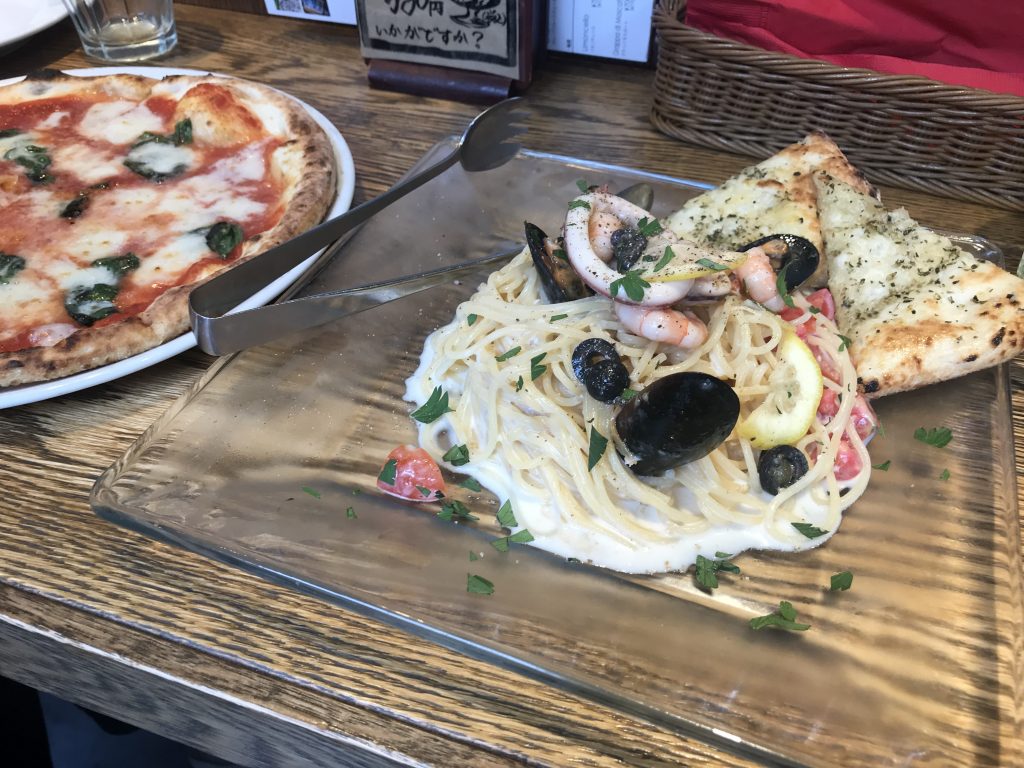 昼はシェリーズバーガー、と思ったら満席につき、Uターンしてサルバトーレを訪店。冷製パスタとマルゲリータピッツァを頂いた。サラダは片方をポテトサラダにしてもらった。この緑色のポテトサラダは大好物と言える。
