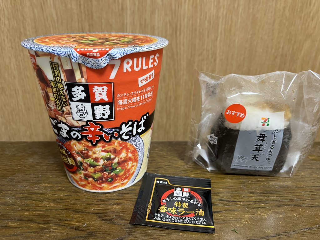 昼は訳アリのコンビニごはん。夜は買い置きのカップラーメンを消化した。